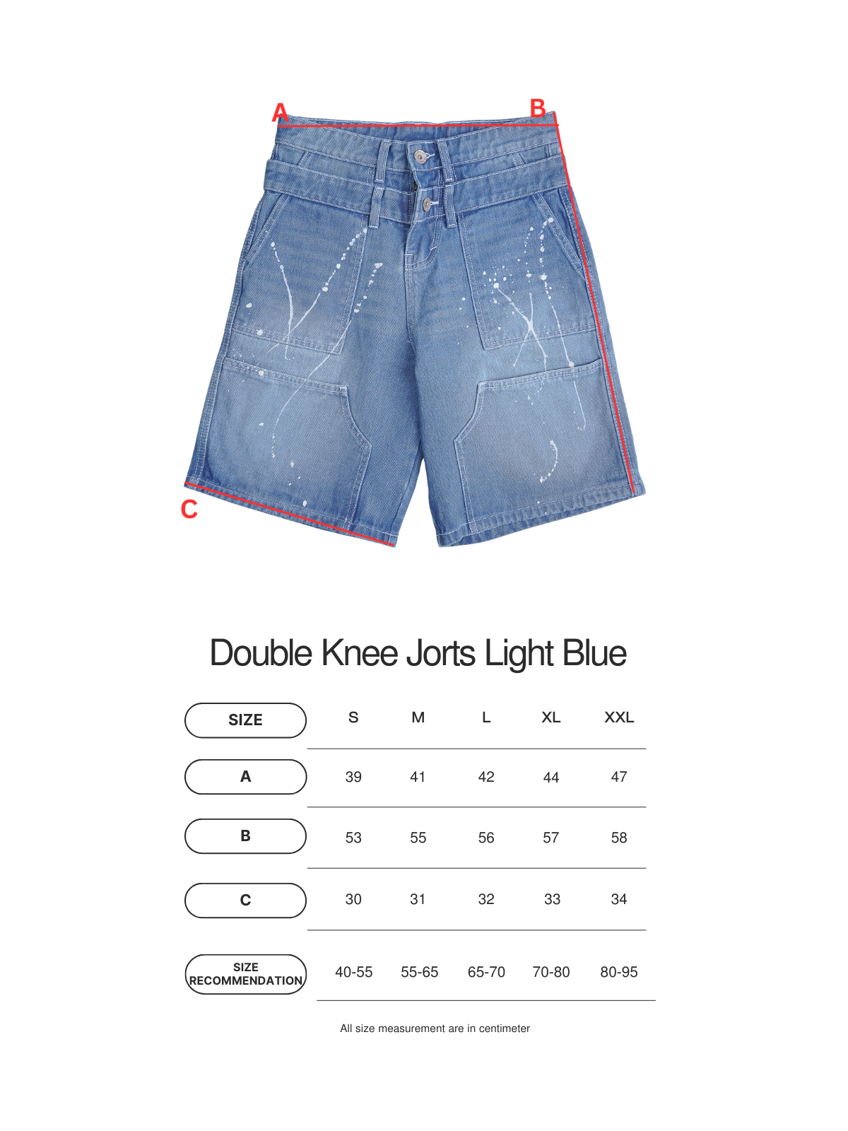 Double Knee Jorts - Light Blue